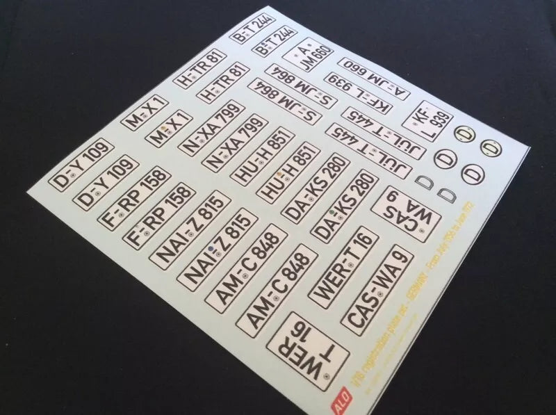 1956-1972 GERMAN REGISTRATION PLATES 1:87, 1:43, 1:24, 1:18 DECALS - FOR 16 CARS