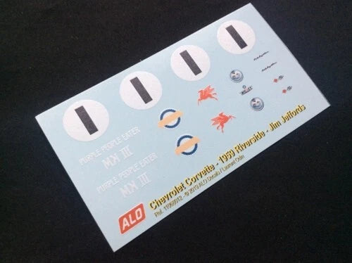 1959 RIVERSIDE SCCA NATIONAL #1 CHEVROLET CORVETTE JIM JEFFORDS 1:43, 1:24 DECALS