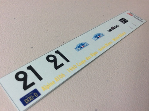 1960 COUPE DES ALPES #21 ALPINE A106 LUCIEN BLANC/MICHEL BILLARD 1:43, 1:32 DECALS