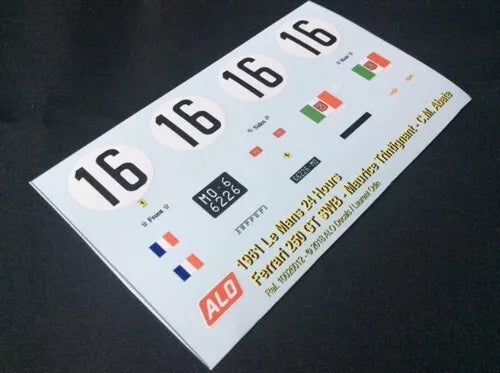 1961 LE MANS 24 HOURS #16 FERRARI 250 GT SWB MAURICE TRINTIGNANT/CARLO MARIA ABATE 1:43, 1:24, 1:18 DECALS