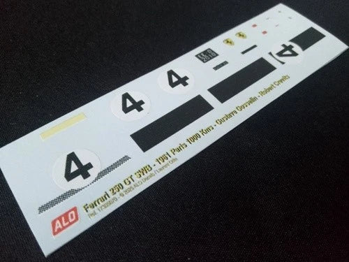 1961 PARIS 1000 KMS, MONTLHERY # 4 FERRARI 250 GT SWB GUSTAVE GOSSELIN/ROBERT CREVITS 1:43, 1:32, 1:24, 1:18 DECALS