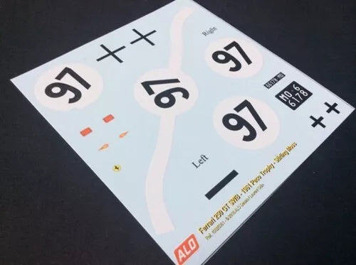 1961 PECO TROPHY, BRANDS HATCH #97 FERRARI 250 GT SWB STIRLING MOSS 1:43, 1:24, 1:18 DECALS