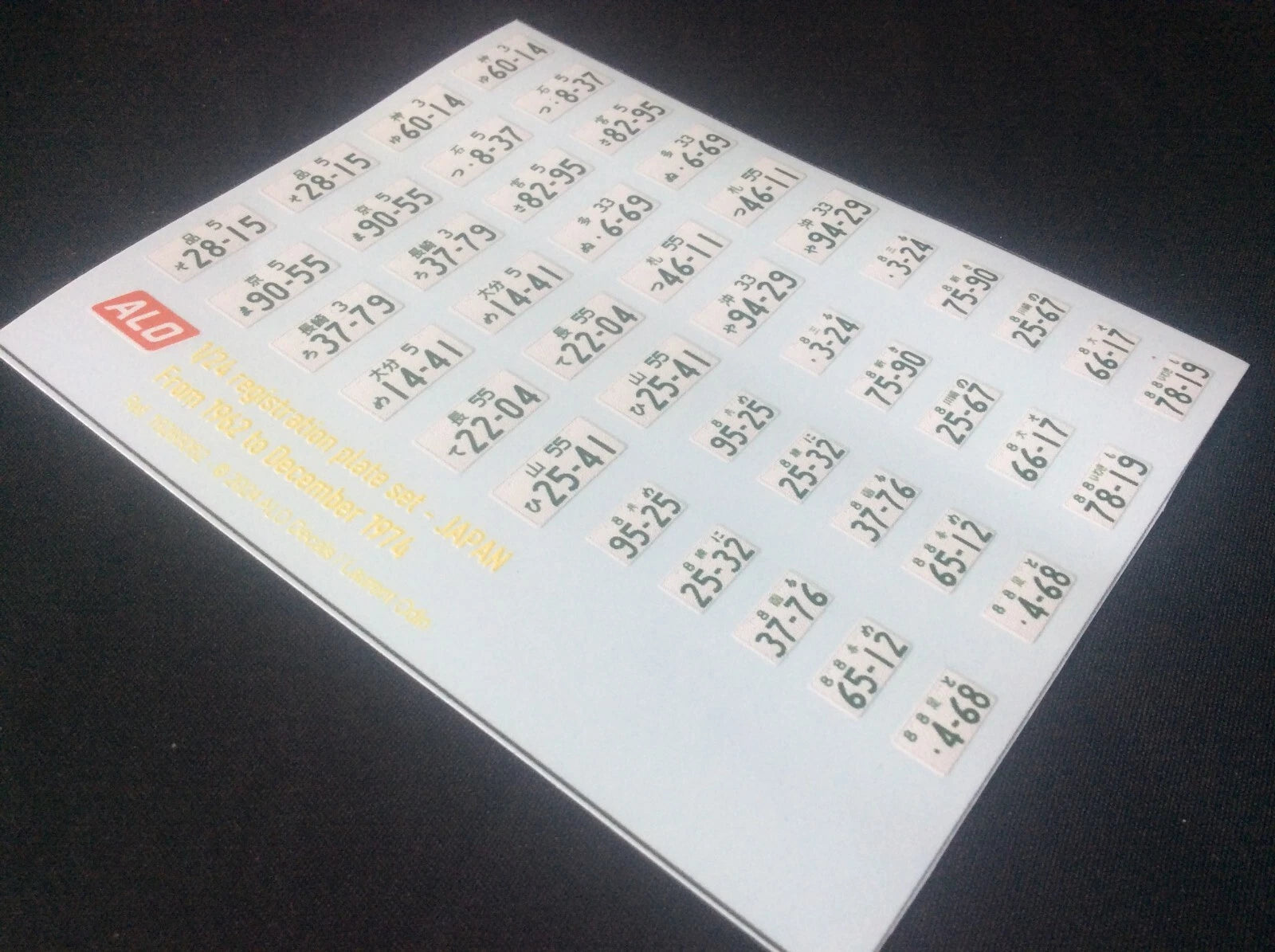 1962-1974 JAPAN REGISTRATION PLATES 1:43, 1:24, 1:18 DECALS - FOR 22 CARS