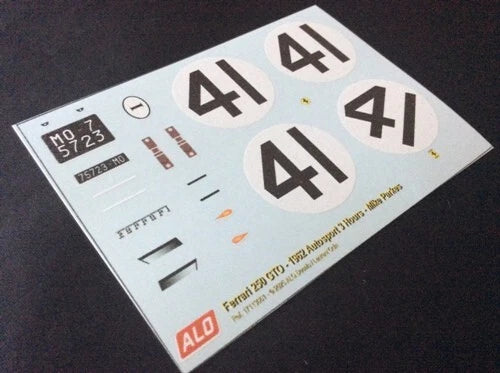 1962 AUTOSPORT 3 HRS, SNETTERTON #41 FERRARI 250 GTO MIKE PARKES 1:43, 1:18 DECALS