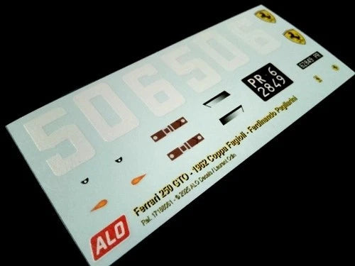 1962 COPPA FAGIOLI #506 FERRARI 250 GTO FERDINANDO PAGLIARINI 1:43, 1:18 DECALS