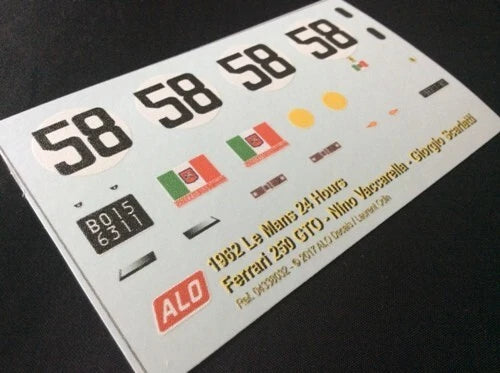 1962 LE MANS 24 HOURS #58 FERRARI 250 GTO NINO VACCARELLA/GIORGIO SCARLATTI 1:43, 1:24, 1:18 DECALS