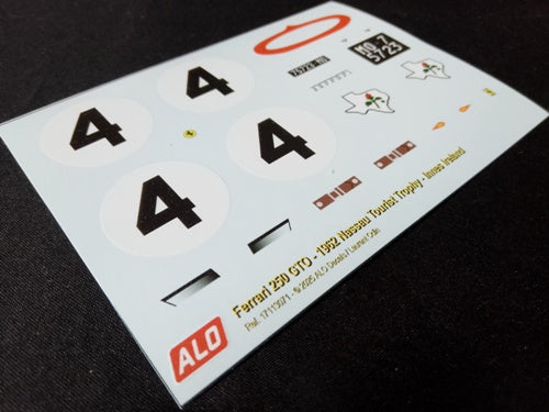 1962 NASSAU TOURIST TROPHY #4 FERRARI 250 GTO INNES IRELAND 1:43, 1:18 DECALS