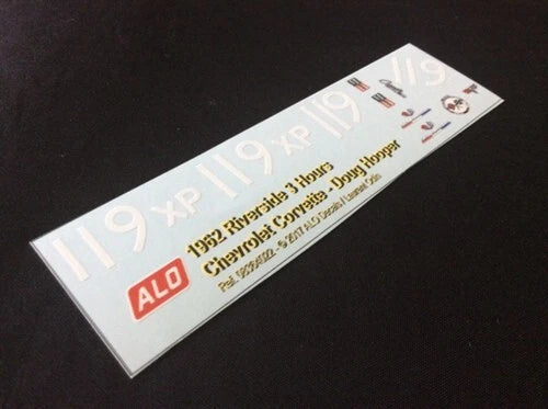 1962 RIVERSIDE 3 HOURS #119 CHEVROLET CORVETTE DOUG HOOPER 1:43, 1:24 DECALS