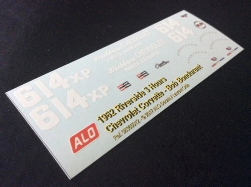 1962 RIVERSIDE 3 HOURS #614 CHEVROLET CORVETTE BOB BONDURANT 1:43, 1:24 DECALS