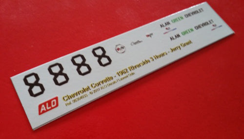 1962 RIVERSIDE 3 HOURS #8 CHEVROLET CORVETTE JERRY GRANT 1:43, 1:32, 1:24, 1:18 DECALS