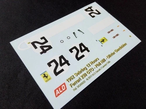 1962 SEBRING 12 HOURS #24 FERRARI 250 GTO PHIL HILL/OLIVIER GENDEBIEN 1:43, 1:24, 1:18 DECALS