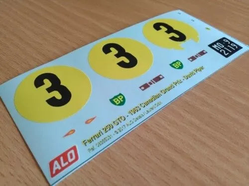 1963 CANADIAN GP #3 FERRARI 250 GTO DAVID PIPER 1:43, 1:18 DECALS