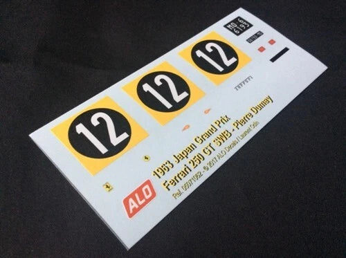 1963 JAPANESE GP #12 FERRARI 250 GT SWB PIERRE DUMAY 1:43, 1:24, 1:18 DECALS