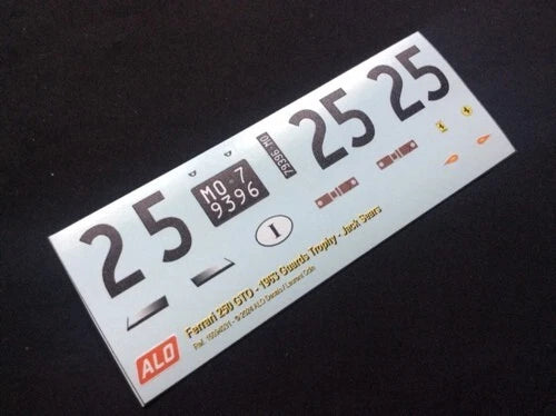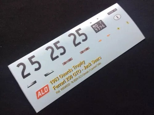 1963 GUARDS TROPHY, BRANDS HATCH #25 FERRARI 250 GTO JACK SEARS 1:43, 1:24, 1:18 DECALS