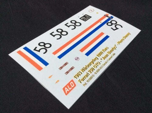 1963 NÜRBURGRING 1000 KMS #58 FERRARI 250 GTO "JEAN BEURLYS"/PIERRE DUMAY 1:43, 1:24, 1:18 DECALS