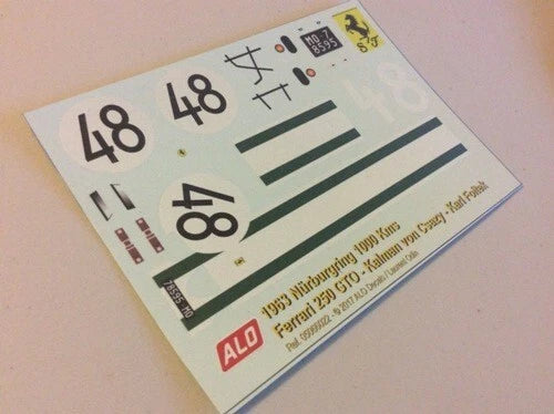 1963 NÜRBURGRING 1000 KMS #48 FERRARI 250 GTO KALMAN VON CSAZY/KARL FOITEK 1:43, 1:24, 1:18 DECALS