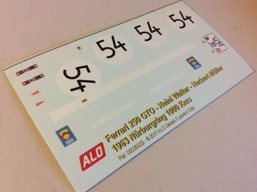 1963 NÜRBURGRING 1000 KMS #54 FERRARI 250 GTO HEINI WALTER/HERBERT MÜLLER 1:43, 1:24, 1:18 DECALS