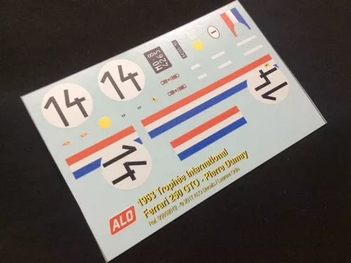 1963 TROPHEE INTERNATIONAL, REIMS #14 FERRARI 250 GTO PIERRE DUMAY 1:43, 1:24, 1:18 DECALS