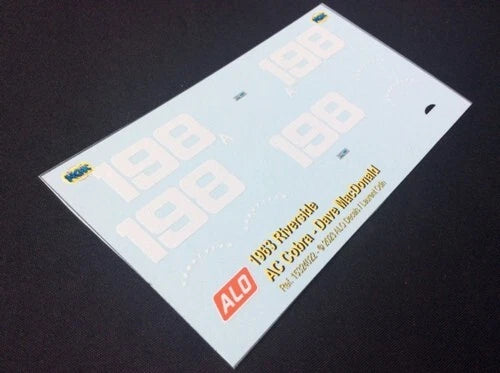 1963 RIVERSIDE #198 AC SHELBY COBRA DAVE MACDONALD 1:43, 1:24 DECALS