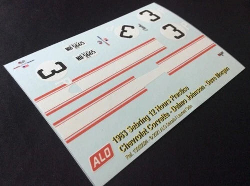 1963 SEBRING 12 HOURS PRACTICE #3P CHEVROLET CORVETTE DELMO JOHNSON/DAVE MORGAN 1:43, 1:24 DECALS