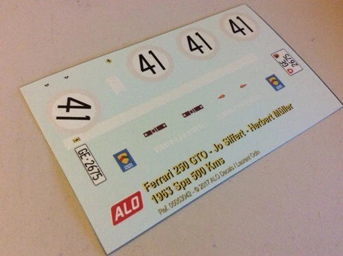 1963 SPA 500 KMS #41 FERRARI 250 GTO JO SIFFERT/HERBERT MÜLLER 1:43, 1:24, 1:18, 1:8 DECALS