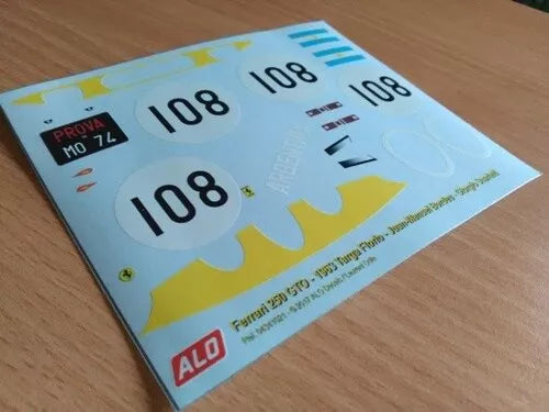 1963 TARGA FLORIO #108 FERRARI 250 GTO JUAN-MANUEL BORDEU/GIORGIO SCARLATTI 1:43, 1:18 DECALS