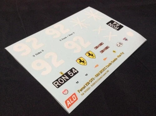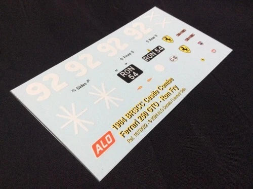 1964 BRSCC CASTLE COMBE #92 FERRARI 250 GTO RON FRY 1:43, 1:24, 1:18 DECALS