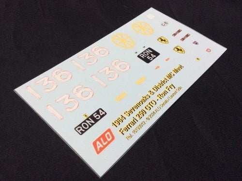 1964 CASTLE COMBE SEVENOAKS & DISTRICT MC MEET #136 FERRARI 250 GTO RON FRY 1:43, 1:24, 1:18 DECALS