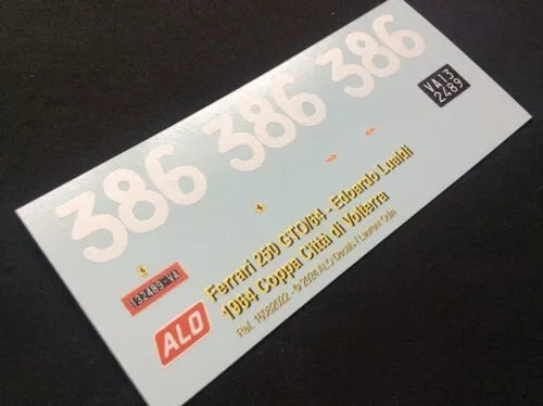 1964 COPPA CITTA DI VOLTERRA #386 FERRARI 250 GTO/64 EDUARDO LUALDI GABARDI 1:43, 1:24, 1:18 DECALS