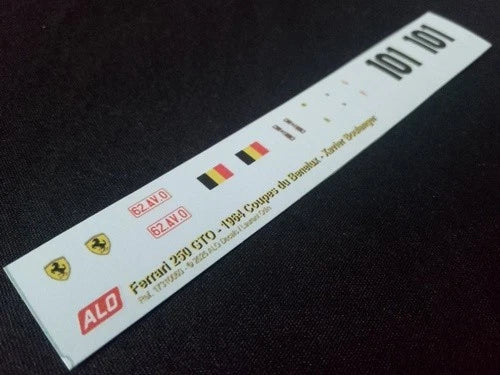1964 COUPES DU BENELUX, ZOLDER #101 FERRARI 250 GTO XAVIER BOULANGER 1:43, 1:32, 1:24, 1:18 DECALS