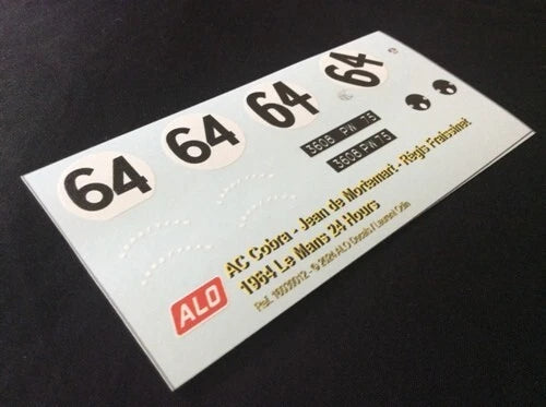 1964 LE MANS 24 HOURS #64 AC SHELBY COBRA JEAN DE MORTEMART/REGIS FRAISSINET 1:43, 1:24 DECALS