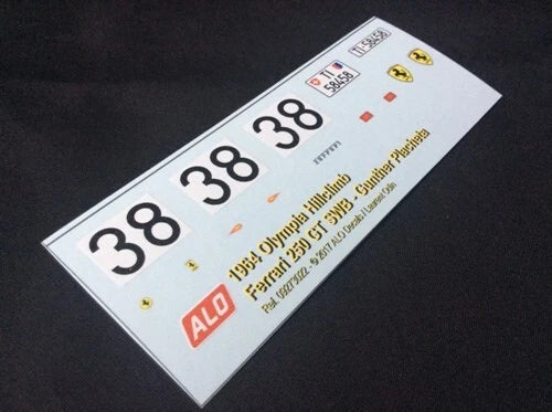1964 OLYMPIA HILLCLIMB #38 FERRARI 250 GT SWB GÜNTHER PLACHETA 1:43, 1:24, 1:18 DECALS