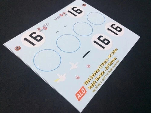1964 SEBRING 12 HOURS #16 AC SHELBY COBRA RALPH NOSEDA/JEF STEVENS 1:43, 1:24 DECALS