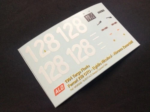 1964 TARGA FLORIO #128 FERRARI 250 GTO EGIDIO NICOLOSI/ABRAMO ZANARDELLI 1:43, 1:24, 1:18 DECALS