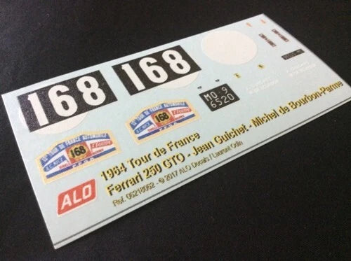 1964 TOUR DE FRANCE #168 FERRARI 250 GTO JEAN GUICHET/MICHEL DE BOURBON-PARME 1:43, 1:24, 1:18 DECALS