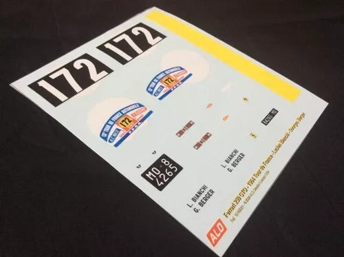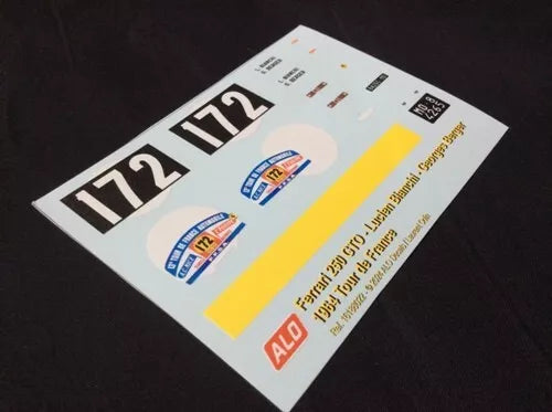 1964 TOUR DE FRANCE #172 FERRARI 250 GTO LUCIEN BIANCHI/GEORGES BERGER 1:43, 1:24, 1:18 DECALS