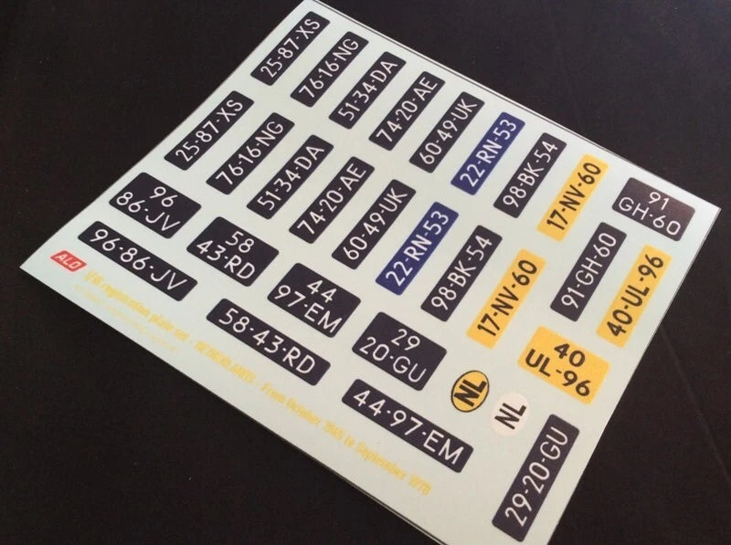 1965-1978 DUTCH REGISTRATION PLATES 1:43, 1:18 DECALS - FOR 14 CARS