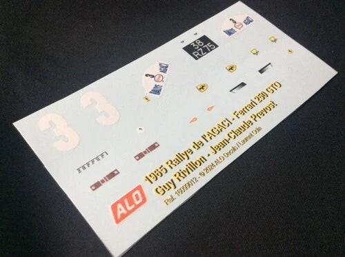 1965 AGACI RALLY #3 FERRARI 250 GTO GUY RIVILLON/JEAN-CLAUDE PREVOST 1:43, 1:24, 1:18 DECALS