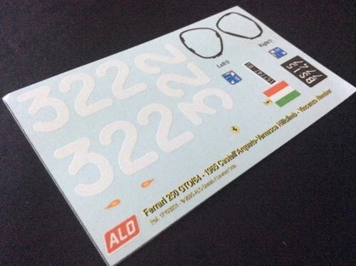 1965 CASTELL'ARQUATO-VERNASCA HILLCLIMB #322 FERRARI 250 GTO/64 VINCENZO NEMBER 1:43, 1:18 DECALS