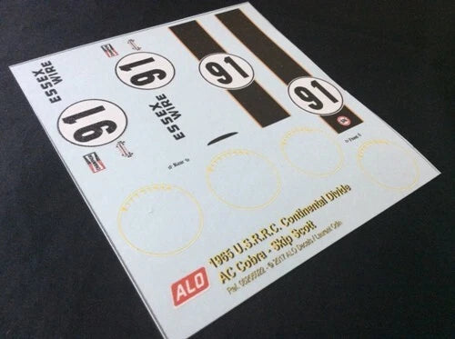 1965 CONTINENTAL DIVIDE USRRC #91 AC SHELBY COBRA SKIP SCOTT 1:43, 1:24 DECALS