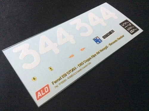 1965 COPPA ALPE DEL NEVEGAL #344 FERRARI 250 GTO/64 VINCENZO NEMBER 1:43, 1:18 DECALS