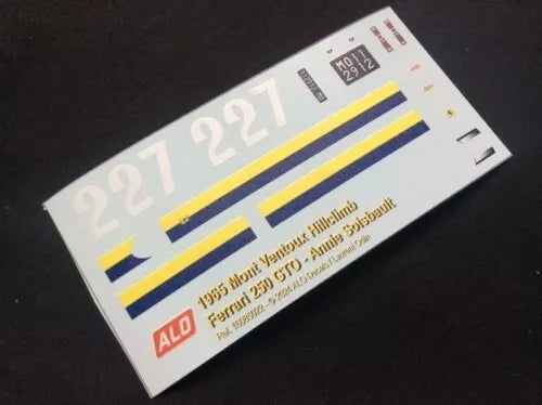 1965 MONT VENTOUX HILLCLIMB #227 FERRARI 250 GTO ANNIE SOISBAULT 1:43, 1:24, 1:18 DECALS