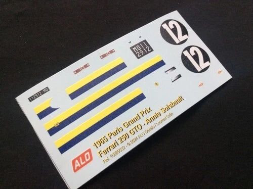 1965 PARIS GRAND PRIX #12 FERRARI 250 GTO ANNIE SOISBAULT 1:43, 1:24, 1:18 DECALS