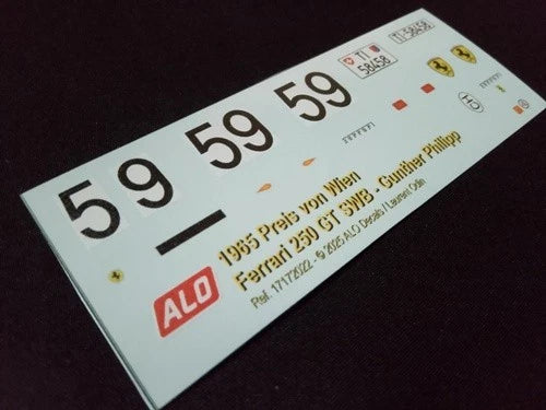 1965 PREIS VON WIEN, ASPERN #59 FERRARI 250 GT SWB GUNTHER PHILIPP 1:43, 1:24, 1:18 DECALS