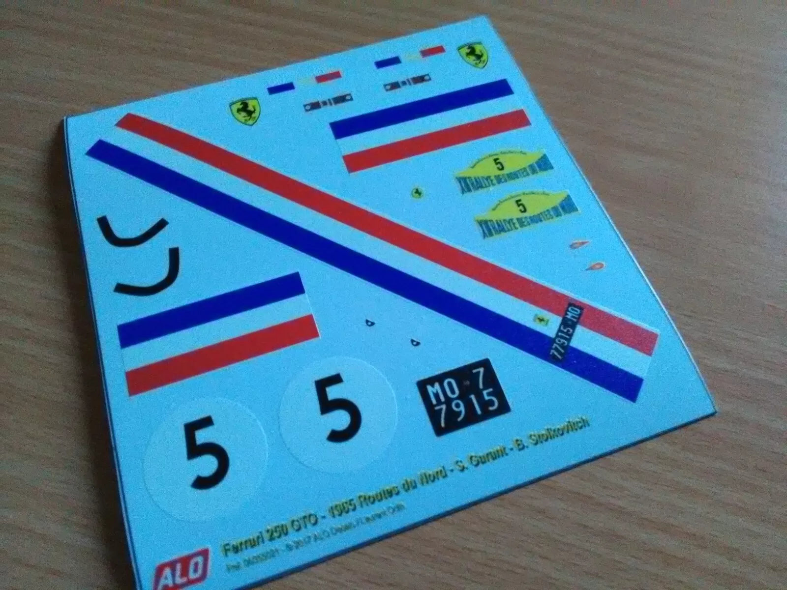1965 ROUTES DU NORD RALLY #5 FERRARI 250 GTO SYLVAIN GARANT/BRANKO STOIKOVITCH 1:43, 1:18 DECALS