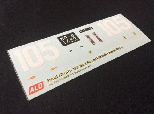 1966 MONT VENTOUX HILLCLIMB #105 FERRARI 250 GTO ROBERT NEYRET 1:43, 1:18 DECALS