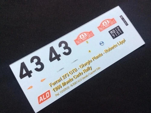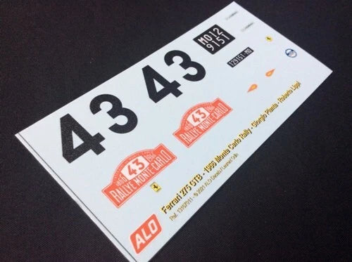 1966 MONTE CARLO RALLY # 43 FERRARI 275 GTB GIORGIO PIANTA/ROBERTO LIPPI 1:43, 1:24, 1:18 DECALS