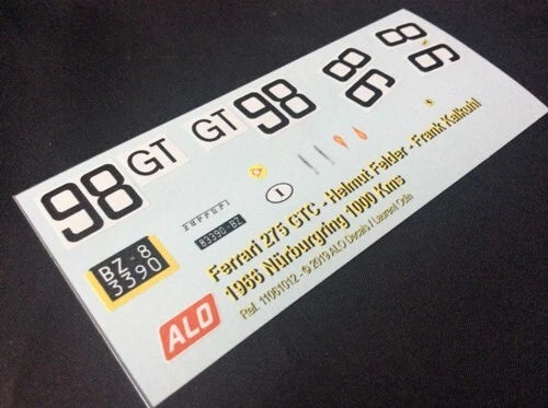 1966 NÜRBURGRING 1000 KMS # 98 FERRARI 275 GTB HELMUT FELDER/FRANK KALKUHL 1:43, 1:24, 1:18 DECALS