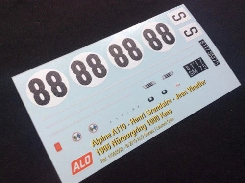 1966 NÜRBURGRING 1000 KMS # 88 ALPINE A110 HENRI GRANDSIRE/JEAN VINATIER 1:43, 1:24 DECALS