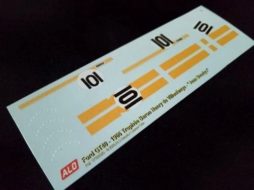 1966 TROPHEE BARON HENRY DE VILLENFANGE, ZOLDER #101 FORD GT40 "JEAN BEURLYS" 1:43 DECALS
